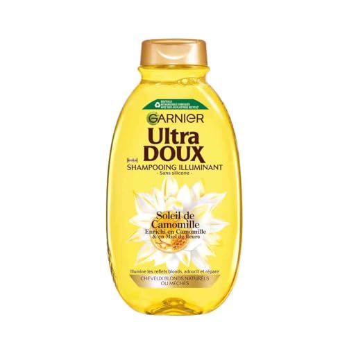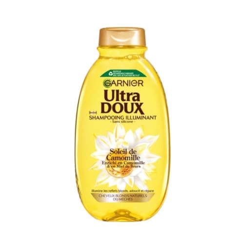 Garnier Ultra Doux - Shampooing Illuminant pour Cheveux Blonds naturels ou méchés - Camomille et Miel de Fleurs - Sans Silicone - Hommes et Femmes - 400 ml