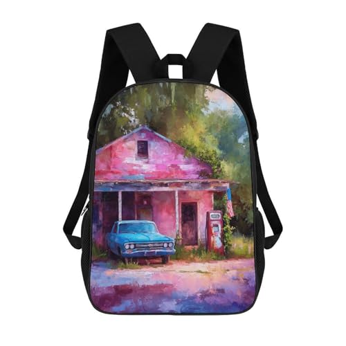 sinyumoney Vintage Gas Station Scene Sac À Dos Scolaire Imprimé En 3D Pour Enfants, Sac À Dos De Voyage, Sac Tendance Et Décontracté Pour Écoliers 17inch