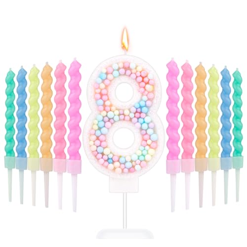 Macaron Bougies d'Anniversaire Numérotées, Douces Bougies Numérotées avec 12 Bougies Spirales Arc-En-Ciel Couleur Bonbon Bougie de Décoration Gâteau pour Anniversaire Fête d'Anniversaire (8)