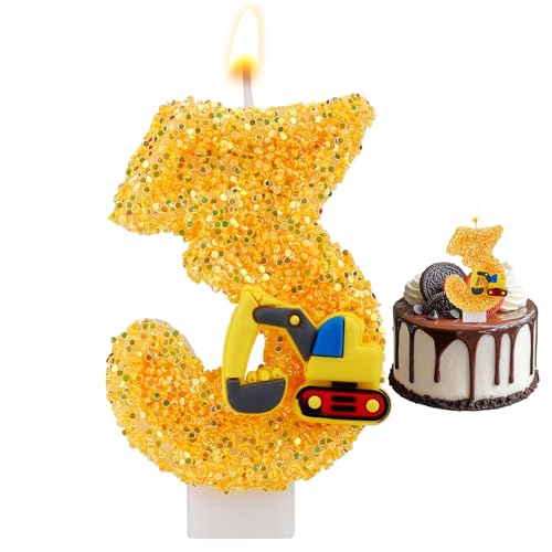 Bougie d'Anniversaire de Construction,Décorations de Gâteau de Construction Véhicules de Construction Tracteur pour Enfants,Décorations De Gâteaux Créatives,Décorations D'Anniversaire (Numéro 3)