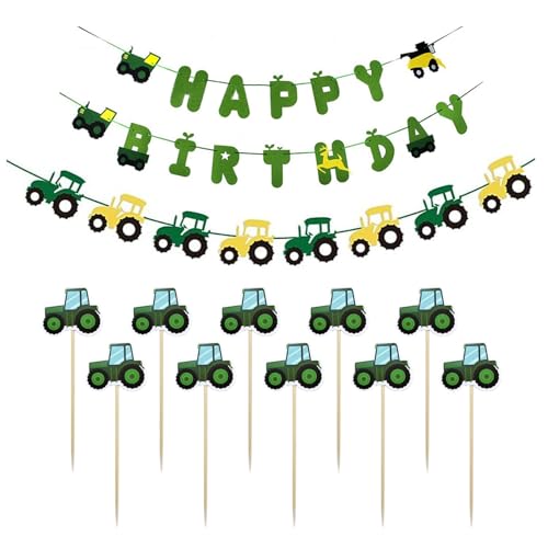 LCIEFKAE Bannière 1-Partie, Drapeau De Train À 1 Pièce Et 10 Inserts De Cartes À Gâteau, Bannières De Dessins Animés Créatifs, Ornements De Tracteur, Fête d'anniversaire -Rangement.