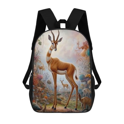 sinyumoney Sac À Dos 3D Pour Enfants Surreal Whimsical Gazelle Sacs Imprimés Sac D'école Sac À Dos Léger Sac À Dos Tendance Et Amusant Pour Enfants 17inch