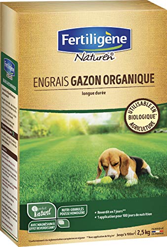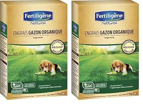 Fertiligène Engrais Gazon Organique 2,5 kg - Reverdit en 7 jours - 100 jours de nutrition - Limite les risques de lessivage - Pour 100m² (Lot de 2)