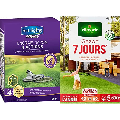 Fertiligene Engrais Gazon 4 Actions, 2,45kg, 60m² & Vilmorin 4460714 Gazon 7 Jours, Vert, 1 kg