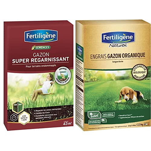 Fertiligene Gazon Super Regarnissant, 43m² & NATUREN Engrais Gazon Organique 100m² 2,5kg