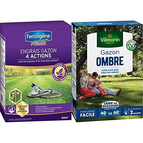 Fertiligene Engrais Gazon 4 Actions, 2,45kg, 60m² & Vilmorin 4466514 Gazon Ombre, Vert, 1 kg