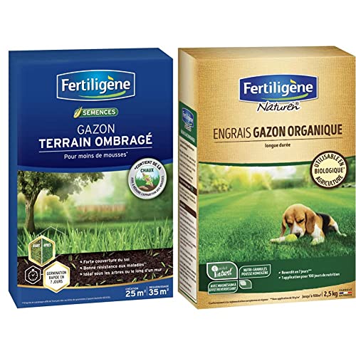 Fertiligene Gazon Terrain Ombragé, 25m² & NATUREN Engrais Gazon Organique 100m² 2,5kg