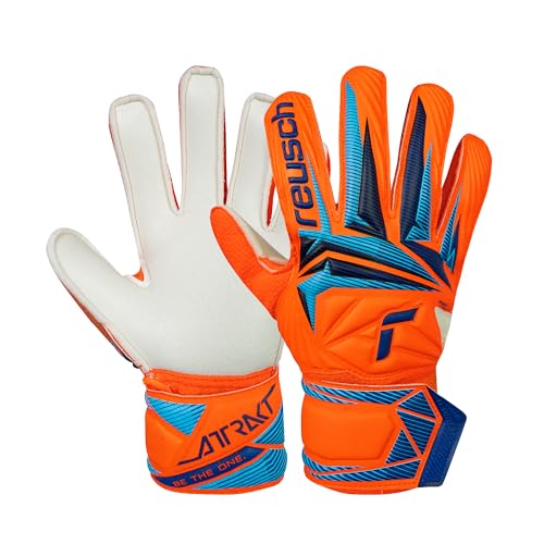 Reusch Gants de Gardien de But pour Enfants et Adolescents | Prise Robuste et Ajustement Stable | Gazon Artificiel, Gazon Naturel et Terrain Dur | Attrakt Resist Junior