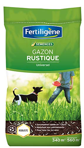 FERTILIGENE RUST340 - Semences Gazon Rustique Universel 8,5 kg - Premières pousses en 1 semaine - Résiste aux piétinements - Pour tous types terrains - Pour 340m² de création et 560m² de regarnissage