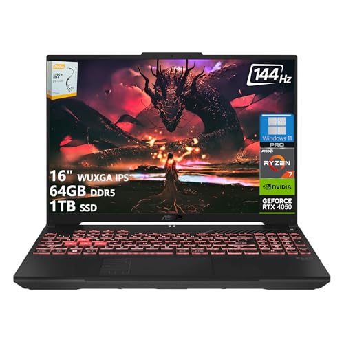 ASUS Ordinateur portable de jeu TUF A16 | WUXGA IPS 16" 144 Hz | AMD 6-Core Ryzen 7 7445HS | 64 Go DDR5 1 To SSD | NVIDIA GeForce RTX 4050 (194 AI Tops) | Clavier rétroéclairé USB 4 Wi-Fi 6 Win11 Pro