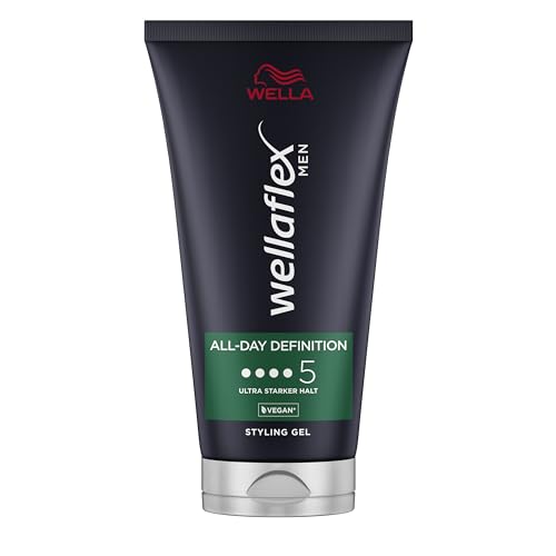 Wellaflex Men All-Day Definition Gel coiffant ultra forte tenue | Gel capillaire végétalien | Testé dermatologiquement et sans silicone | 150 ml