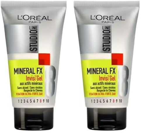 L'Oréal Paris - Gel Coiffant Fixation Ultra-Forte - Enrichi aux Actifs Minéraux - Tenue 24h Sans Résidus - Tous Types de Cheveux - Studio Line Mineral Fx - 150 ml (Lot de 2)