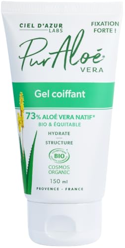 Ciel d'Azur Labs - Gel Coiffant - 73% Aloé Vera Bio & Équitable - Fixation Forte, Hydrate et Structure - Certifié Cosmos Organic - 99% d'Origine Naturelle - Tube 150 ml