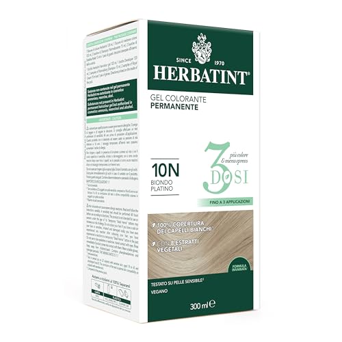 Herbatint Gel Colorant Permanent 3Doses, 300 ml - 10 N Blond Platine, Sans Ammoniaque, pour peaux sensibles, 100% Couverture Cheveux Blancs avec 8 Extraits Naturels Bio