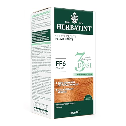 Herbatint Gel colorant permanent 3doses, 300 ml - FF6 orange, sans ammoniaque, pour peaux sensibles, 100% couverture cheveux blancs, avec 8 extraits naturels bio