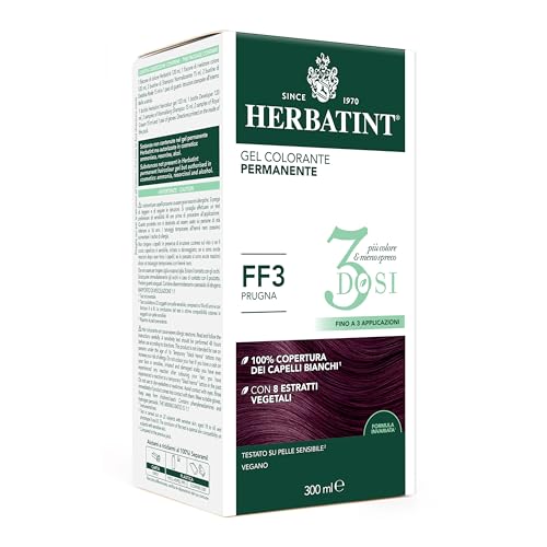 Herbatint Gel Colorant Permanent 3Dosi, 300 ml - FF3 Prune, sans ammoniaque, pour peaux sensibles, 100% couverture cheveux blancs, avec 8 extraits naturels bio