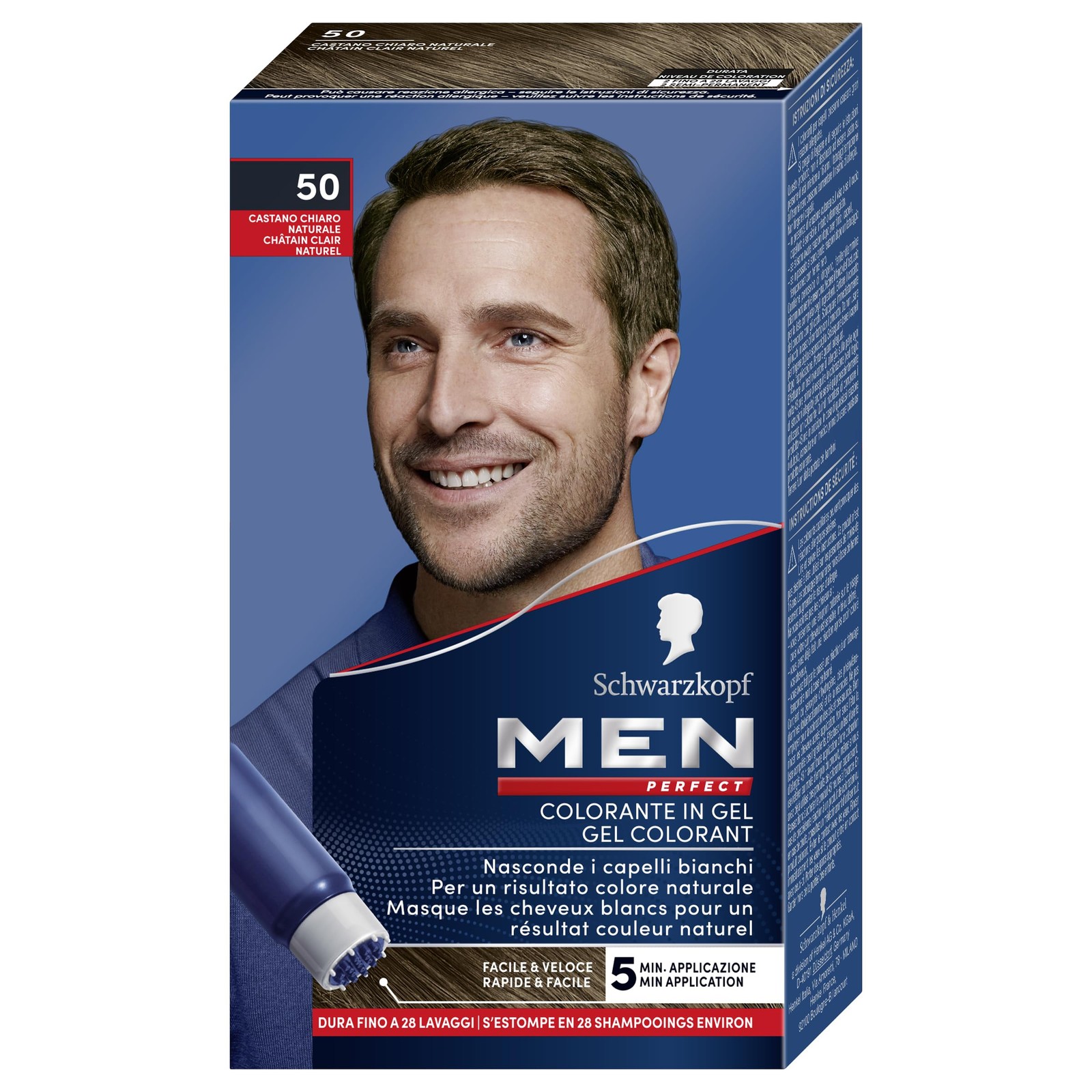 Schwarzkopf - Men Perfect - Gel Colorant Anti-Cheveux Blancs Homme - Coloration - Résultat Naturel – Application rapide et facile - Sans Ammoniaque - Châtain Clair 50