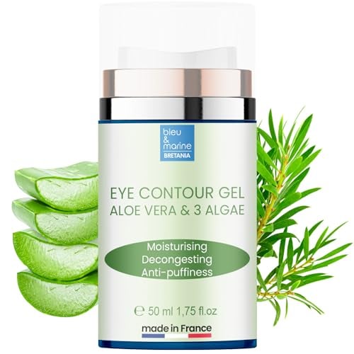 bleu & marine Bretania - Gel Contour des Yeux Anti-Âge | Hydratation à l'Aloe Vera & Algues Marines | Réduit Rides, Cernes & Poches | Peaux Sensibles, Texture Légère, 50 ml