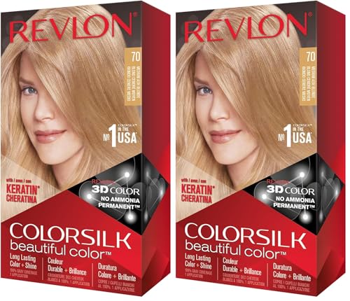 Revlon Colorsilk Beautiful Color Coloration Permanente des Cheveux avec Technologie au Gel 3D et Kératine, Teinture avec Couvrance à 100% des Cheveux Blancs, 70 Blond Cendré Moyen (Lot de 2)