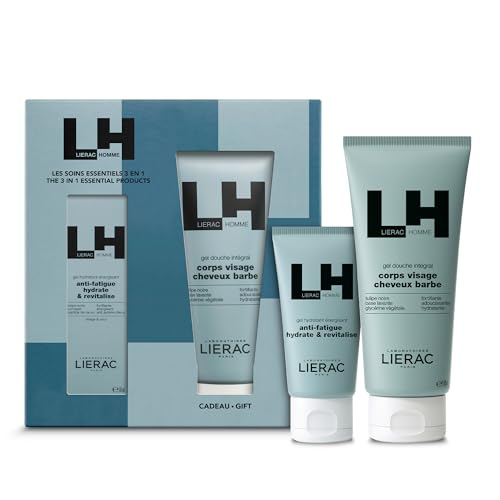 Lierac - Coffret Cadeau Homme Gel Hydratant Energisant et Gel Douche offert - Soins 3-en-un Peau, Cheveux et Barbe - Hydratation Renforcée - Tous types de Peaux - Edition Cadeau Fête des Pères