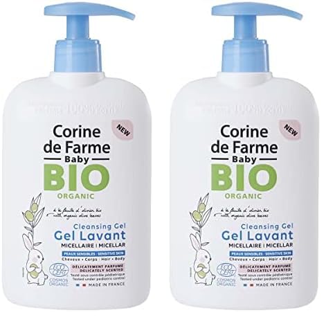 Corine de Farme - Gel Lavant Micellaire Corps & Cheveux Parfumé pour Bébé - Certifié BIO Ecocert - Peaux Sensibles, Cheveux Délicats - Dès la Naissance - 500 ml (Lot de 2)