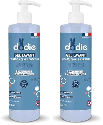 DODIE Gel Lavant 3 en 1 (500 mL) - Nettoyant Visage, Corps et Cheveux - 92% d’ingrédients d’origine naturelle, Hypoallergénique - Dès la naissance (Lot de 2)