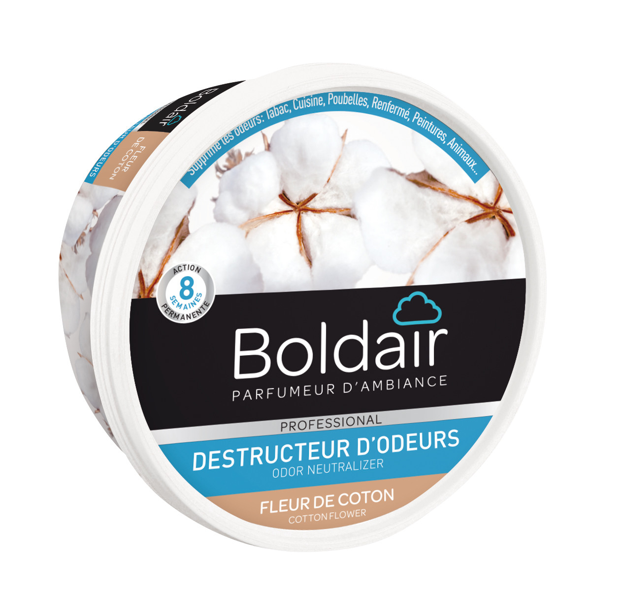 BOLDAIR - Gel destructeur dodeur Fleur de Coton - Neutralise les odeurs - parfume- durée 8 semaines - 300g - Fabrication française