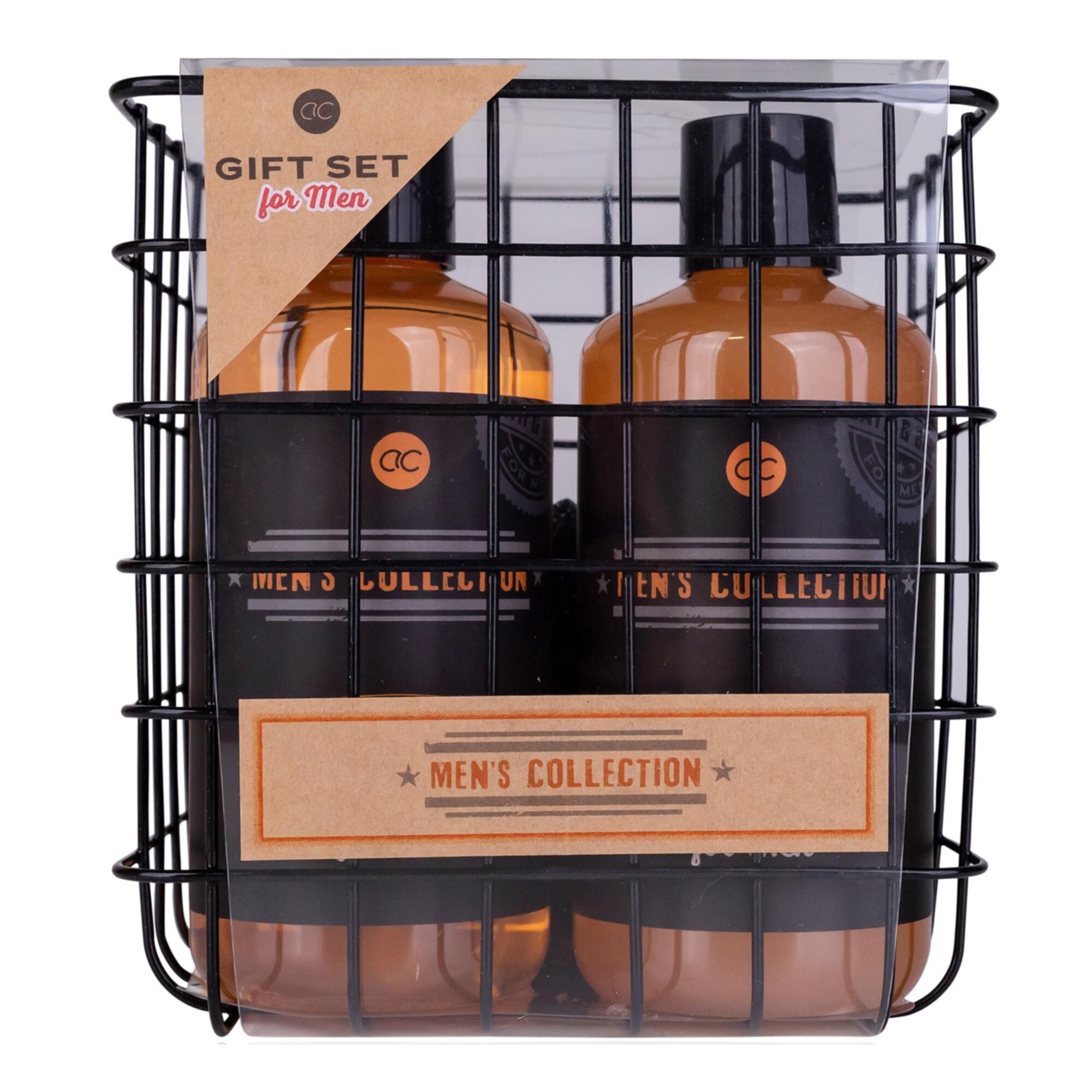 COSMETIC CLUB - SC40043 Coffret Soin Corps Homme, 5 Accessoires : Gel Douche, Mousse à Raser, Fleur de Douche, Ciseaux à Ongles, Parfum Bois de Cachemire, Design Marron Noir