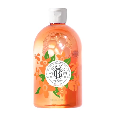 Roger&Gallet – Gel Douche Bienfaisant Néroli 500 ml – Extrait de Fleur de Bigaradier & Aloe Vera – Apaisant, Hydratant, Ensoleillé – Base Lavante 100% Végétale