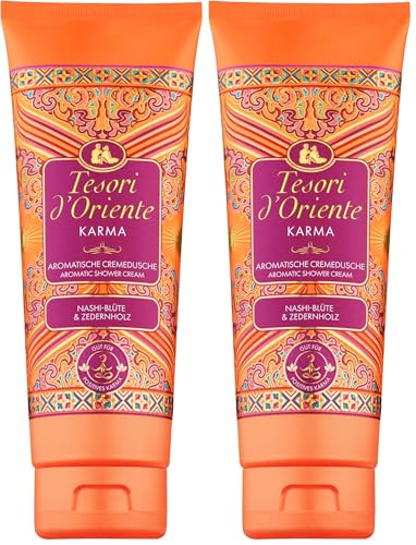 Tesori d'Oriente Crème de douche « Karma », 250 ml, gel douche aromatique avec fleur de Nashi et bois de cèdre, crème de douche pour soins du corps, rituels de bien-être pour le corps et les sens