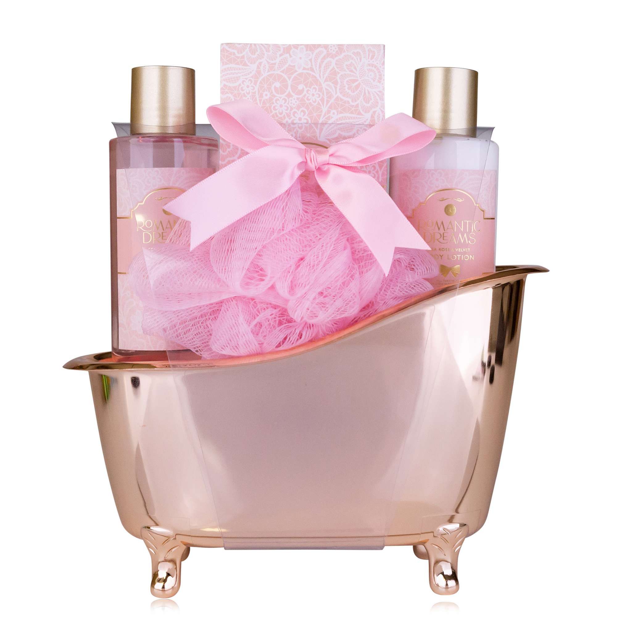 Tentation - Coffret Romantic Dreams Gel Douche, Lotion, Sels De Bains, Exfoliant, Boules Effervescentes & Fleur De Massage