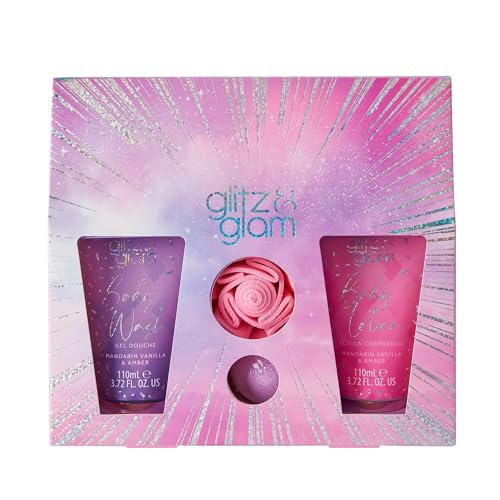 Style & Grace Glitz & Glam Glimmer Coffret cadeau Eco Packaging 110 ml Gel douche + 110 ml Lotion pour le corps + 80 g de bain pétillant + 1 fleur de douche