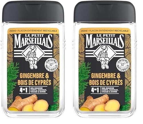 Le Petit Marseillais | Gel Douche Homme Gingembre & Bois de Cyprès (flacon de 250 ml) – Formule 4 en 1 corps, cheveux, visage & barbe – 92% d'ingrédients d'origine naturelle et pH neutre (Lot de 2)