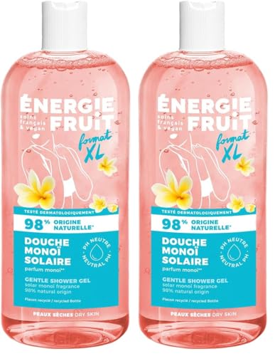 ENERGIE FRUIT | Gel Douche pH Neutre | Monoï & Macadamia BIO | Fabrication Française | Vegan | 500ml (Lot de 2)