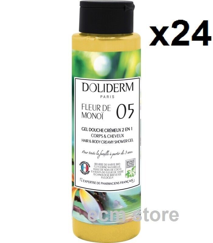 Doliderm Pack de 24 pcs Gel douche crémeux 2 en 1 N°05 fleur de monoi 200 ml