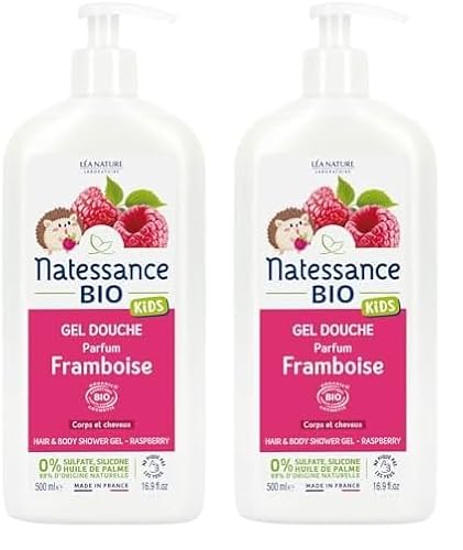 Natessance - Gel douche corps et cheveux Kids Framboise (Lot de 2)