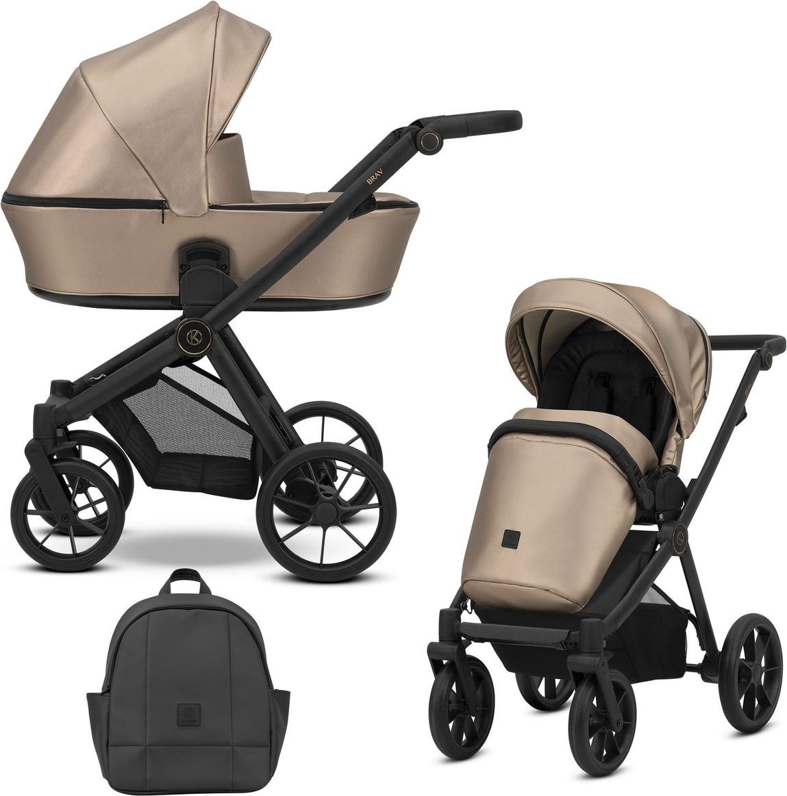 Kunert BRAV 2in1 Poussette éco-cuir marron avec cadre noir et roues en gel pour le confort et le style