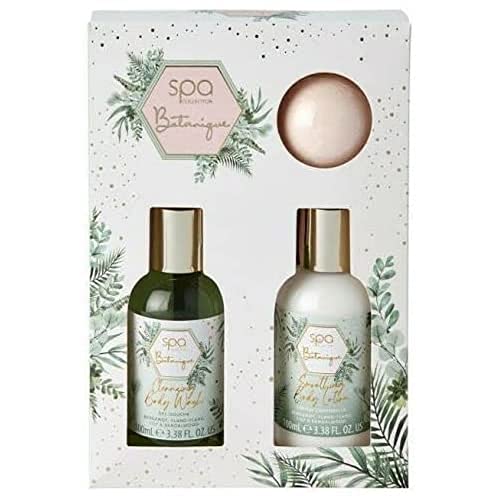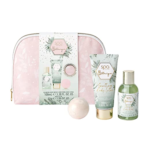 Style & Grace Spa Botanique Coffret Cadeau Eco Packaging 100 ML Lotion pour Le Corps + 100 ML de Gel Douche + 55 g de pétillant de Bain + Trousse à cosmétiques en Tissu recyclé