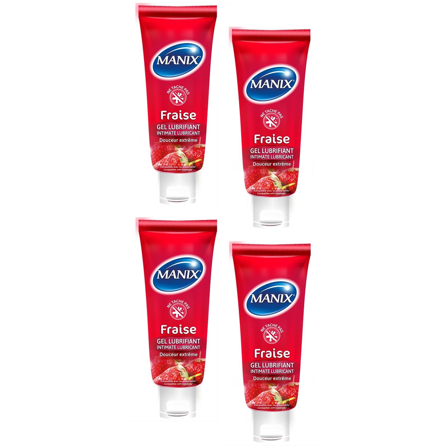 [400043-4] MANIX Lot de 4 Tubes Gel Lubrifiant Intime FRAISE - 80ml