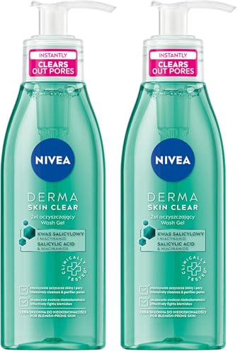 NIVEA Derma Skin Clear Gel nettoyant visage (1 x 150 ml), Soin nettoyant formulé pour les peaux à imperfections, Gel visage à l'acide salicylique & niacinamide (Lot de 2)