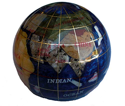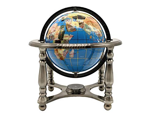 Unique Art 10-inch by 6-inch Blue Lapis Ocean Table Top Gemstone World Globe with Gold Tripod