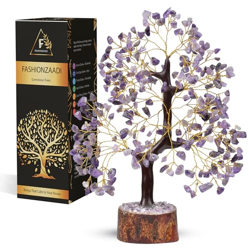 FASHIONZAADI Amethyst Bonsai Money Tree Feng Shui Crystal Gemstone Trees Chakra Stone Healing Crystals Good Luck Home Office Table Décor Health Prosperity Size 10-12 inch (Golden Wire)