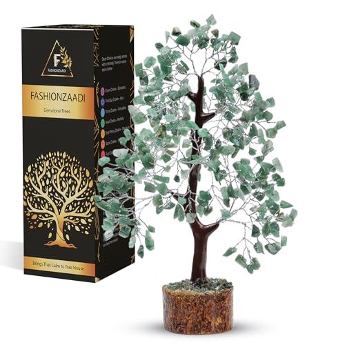 FASHIONZAADI Green Aventurine Gemstone Chakra Bonsai Tree Healing Crystals Chakra Trees Reiki Stone Goodluck Chakras Crystal Home Office Living Room Table Décor Gift Size 10-12 inch (Silver Wire)
