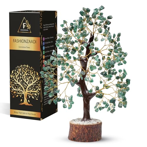 FASHIONZAADI Green Aventurine Gemstone Crystal Tree Feng Shui Crystals Chakra Healing Stone Crystal Trees Good Luck Home House Office Table Décor Spiritual Gift Size 10-12 inch (Golden Wire)