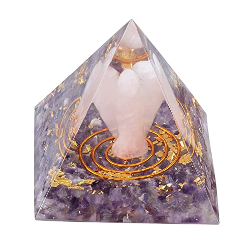 KYEYGWO Améthyste Reiki Fengshui Crystal Pyramids Gemstone avec Rose Quartz Angel, Positive Guardian Angel Pyramid, Figurines en Pierre, Ornement de Bureau, Décoration d'intérieur