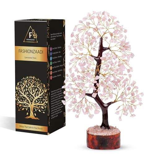 FASHIONZAADI Rose Quartz Gemstone Crystal Tree Healing Crystals & Stones Chakra Trees Reiki Stone Good Luck Bonsai Crystal Home Office Table Décor Gift Size -10-12 inch (Golden Wire)