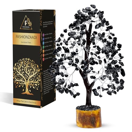 FASHIONZAADI Black Tourmaline Feng Shui Bonsai Chakra Tree Healing Crystals Gemstone Trees Reiki Stones Good Luck Home Office Décor Health Prosperity Size 10-12 inch (Silver Wire)