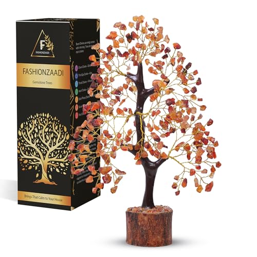 FASHIONZAADI Carnelian Feng Shui Gemstone Crystal Tree Bonsai Trees for Chakra Healing Stone Crystal Good Luck Home Decoration House Spiritual Gift Office Table Décor Size 10-12 inch (Golden Wire)
