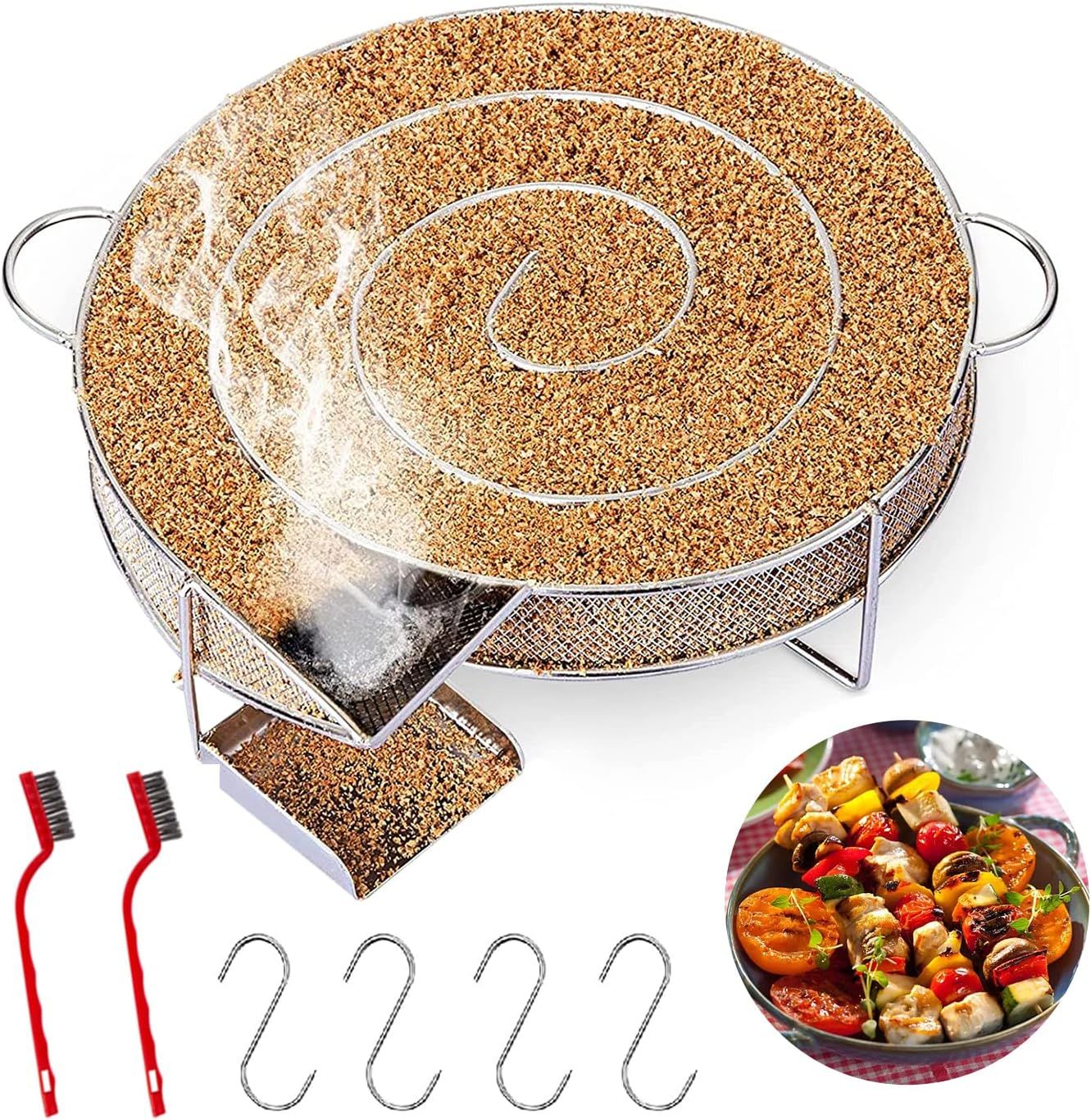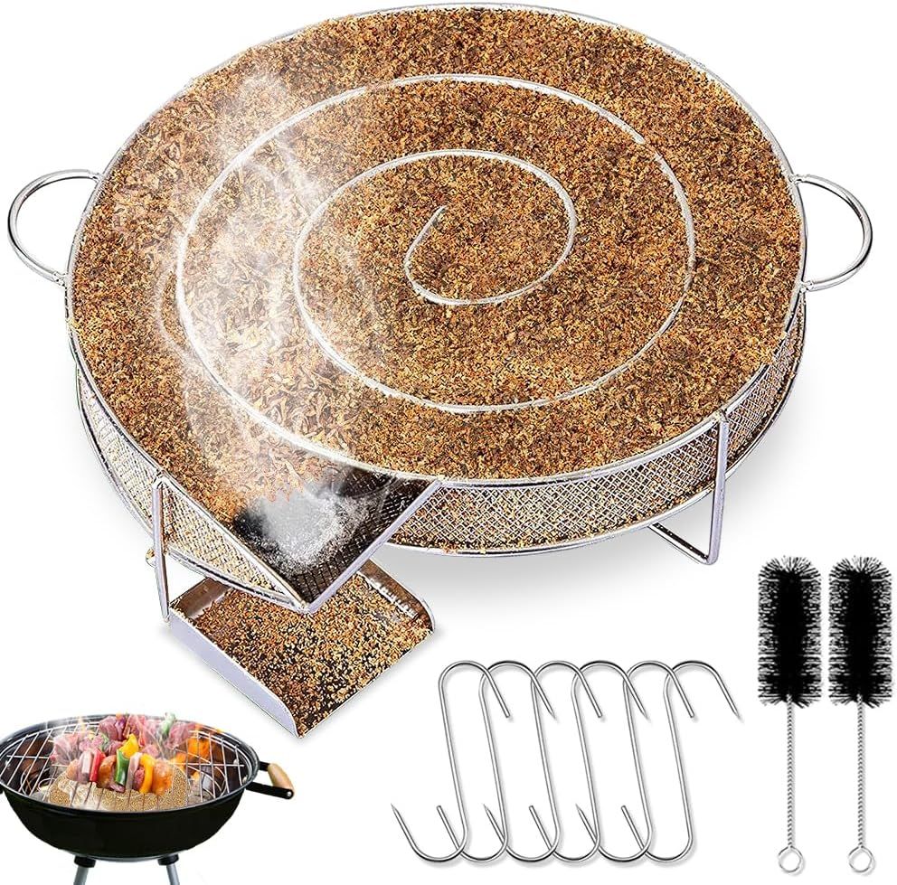 MEVRONISSHOP-Générateur de Fumée Froide, Generateur Fumee Froide Rond en Acier Inoxydable avec Brosse et Crochet Fumage à Froid en Forme D'escargot Réutilisable BBQ Fumoir pour Barbecue et Fumoir