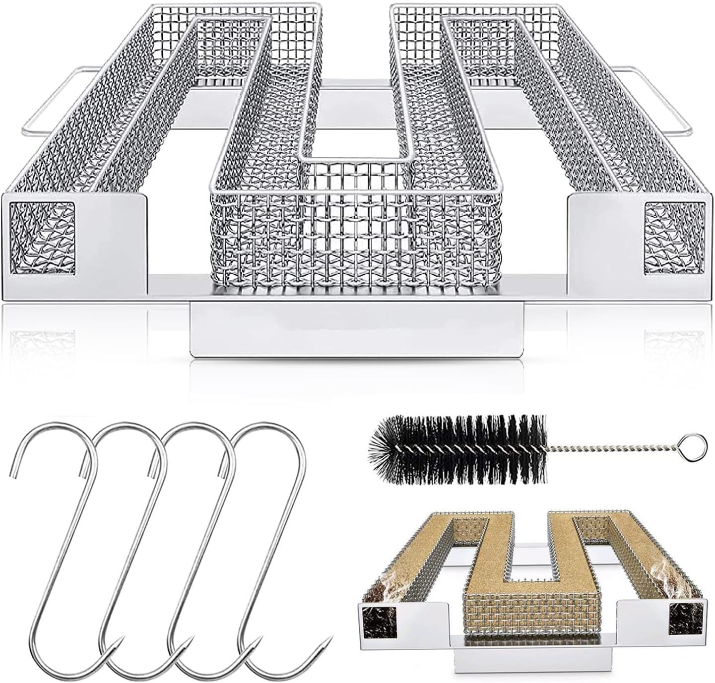 PATB-Générateur de Fumée Froide, Generateur Froide, BBQ Fumoir, Gril-Fumoir Acier Inoxydable, Générateur Fumée avec Brosse et Crochets, Idéal pour Fumer de la Viande, du Poisson, BBQ